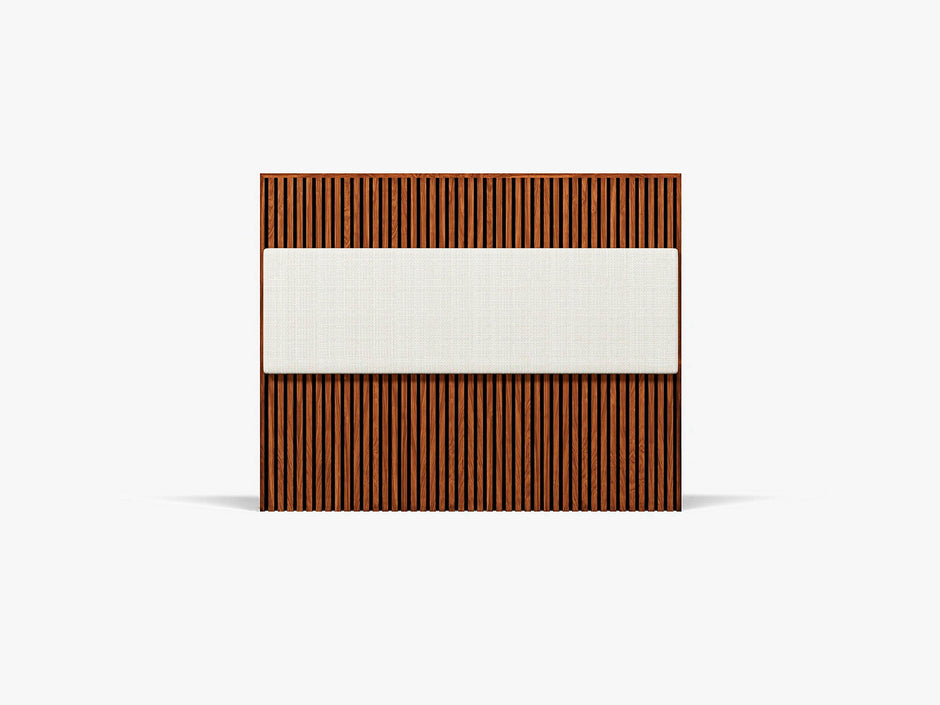 pinnosalo KV Melange Nap DGR 218x149Sänggavel gjord av valnötslameller med bekväm ryggpanel i tyg. Anpassa genom att välja från en mängd tyger i olika färger och texturer. Handgjord i Sverige.