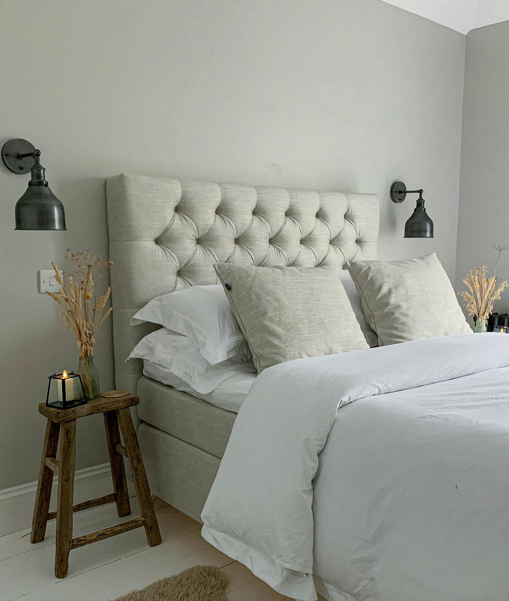 Klassisk sänggavel med djupknappad framsida. Finns i flera storlekar. Välj mellan 44 exklusiva tyger i olika färger. Bornö sänggavel är handgjord i Sverige.